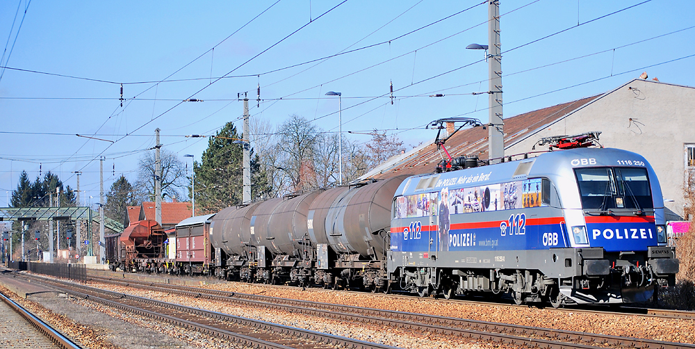 1116 250 mit dem 63205 bei der Durchfahrt in Kritzendorf im Februar 2012.