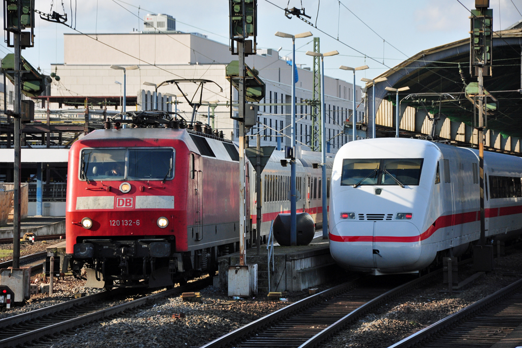 Einfahrt des IC 2013 (Magdeburg - Oberstdorf) auf Gleis 15 des Stuttgarter Hauptbahnhofes.