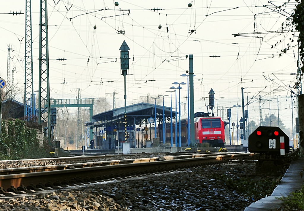 Die 185 141-9 zieht einen kurzen gemischten Güterzug Richtung Süden. Dahinter fuhren noch kalt die 185 107-0 und die 151 028-8 mit. Aufgenommen am 22.02.2012 bei Graben-Neudorf.