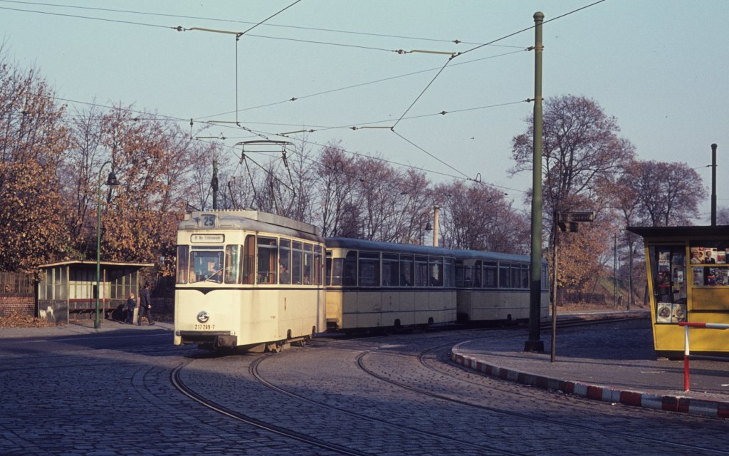 Berlin (Ost) BVB SL 25 (Sw/LEW-Tw 217 269-7) Friedrichshagen, S-Bf Friedrichshagen am 3. November 1973. - Scan eines Diapositivs. Kamera: Minolta SRT-101.