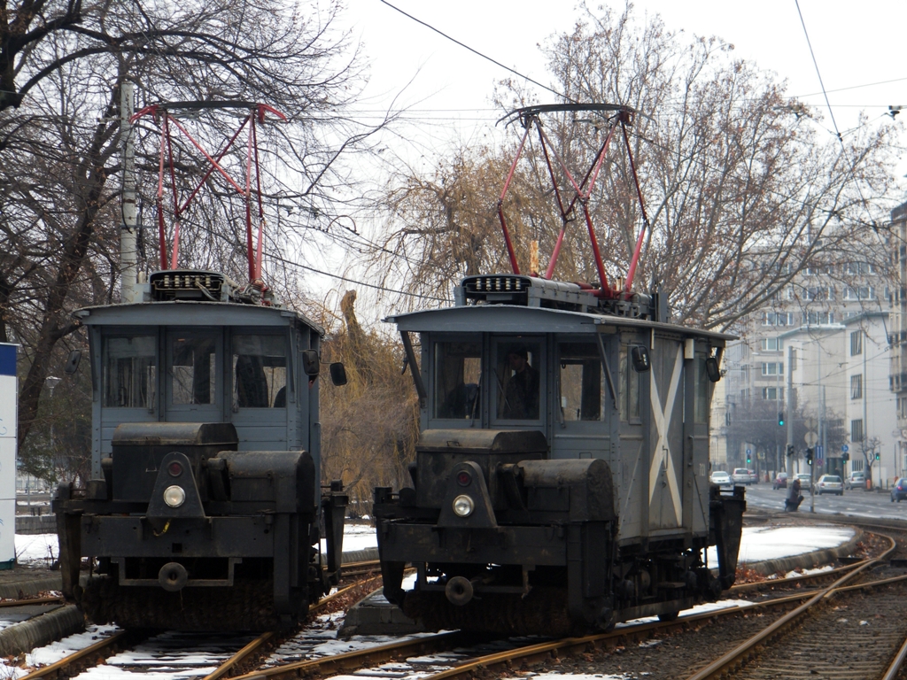 BKV 7141 und 7121 stehen in Budapest am Boráros-Platz, am 19. 02. 2012.