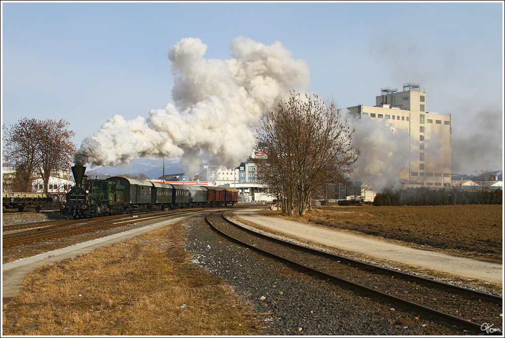 Der nächste Programmpunkt der “The Railway Touring Company” war am 7.2.2012 der "Winterdampf auf der Murtalbahn" - Bespannt mit der U 11 "Mauterndorf" (Baujahr 1894) ging es von Murau nach Tamsweg. St.Ruprecht 7.2.2012
