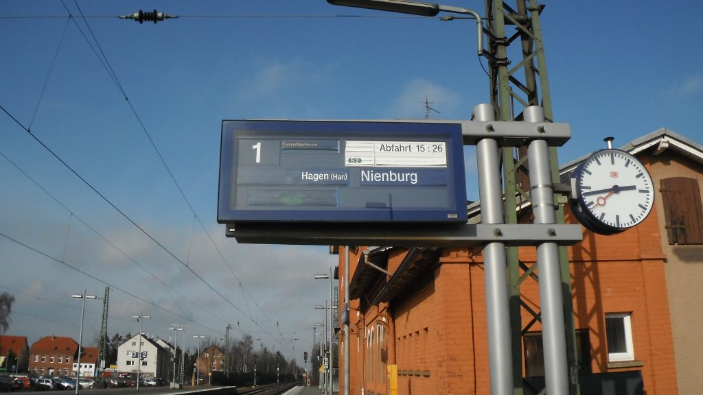 Kommt hier ein Sonderzug? Zugzielaneiger in Neustadt/Rübenberge. Foto vom 20.02.2012.