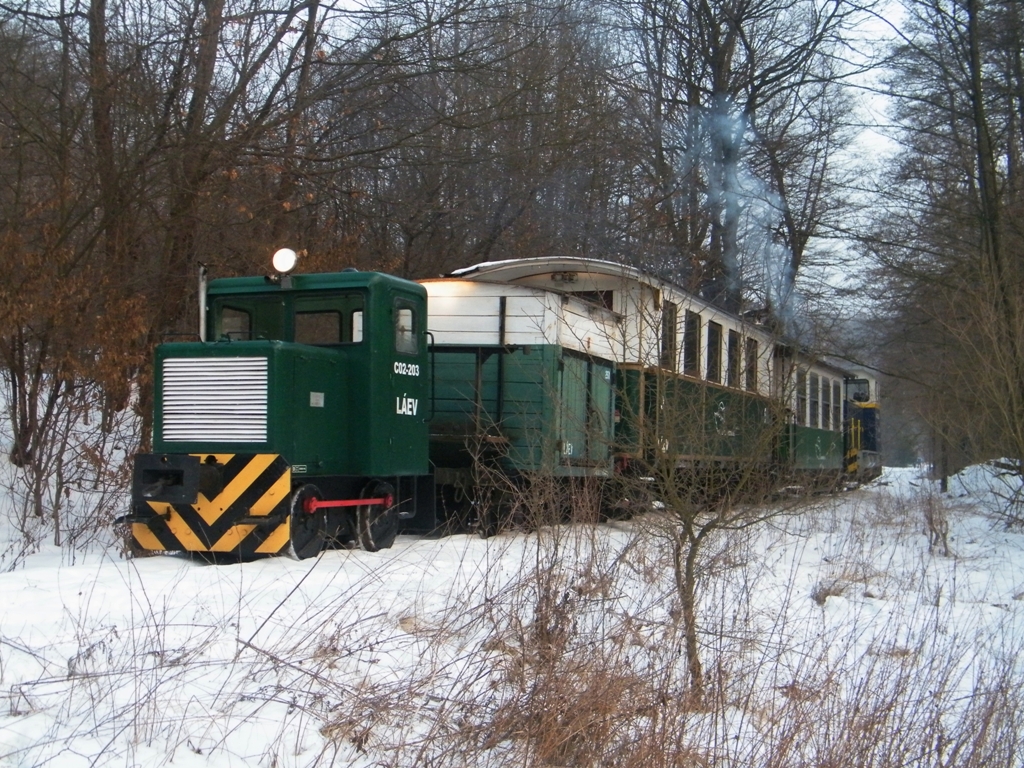 LÁEV C02 203 mit dem zweiten Foto-Sonderzug am LÁEV, am 18. 02. 2012.