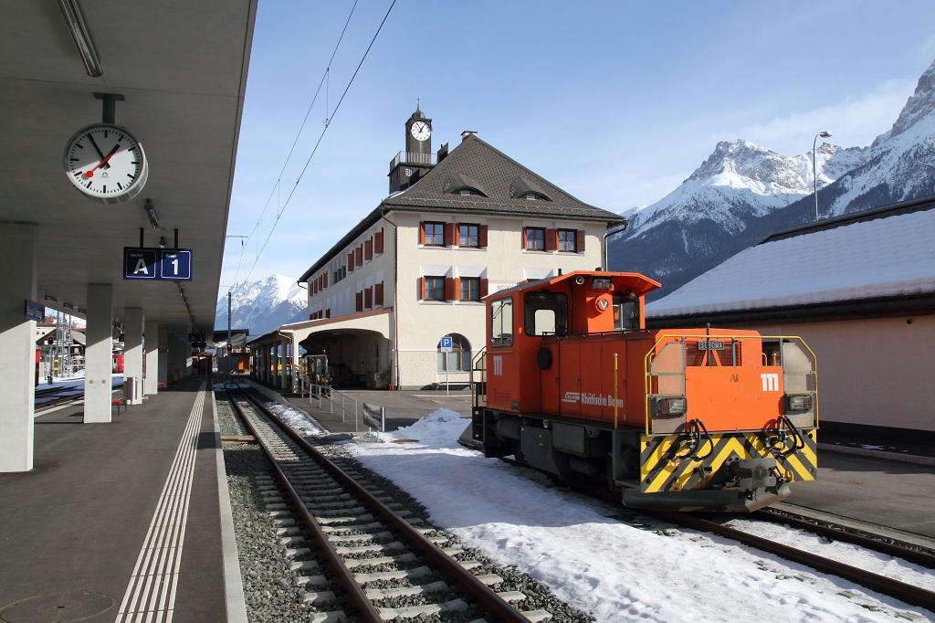 Tm 2/2 111 im neu umgebauten Bahnhof Scuol-Tarasp. (23.01.2011)