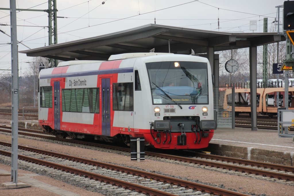 Döllnitzbahn 99 1574-5 mit der DBG 206 nach Mügeln, im Bf Oschatz; 02.01.2012