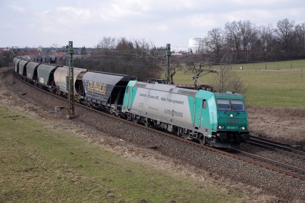Die Lokomotion 185 661 durchrast am 25.2.2012 den Wörgler Hbf in Richtung Innsbruck mit einem LKW-Containerzug.