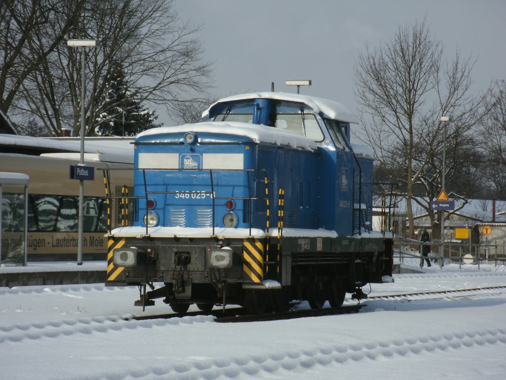 Am 04.Februar 2012 stand im verschneiten Putbus die PRESS 346 025.