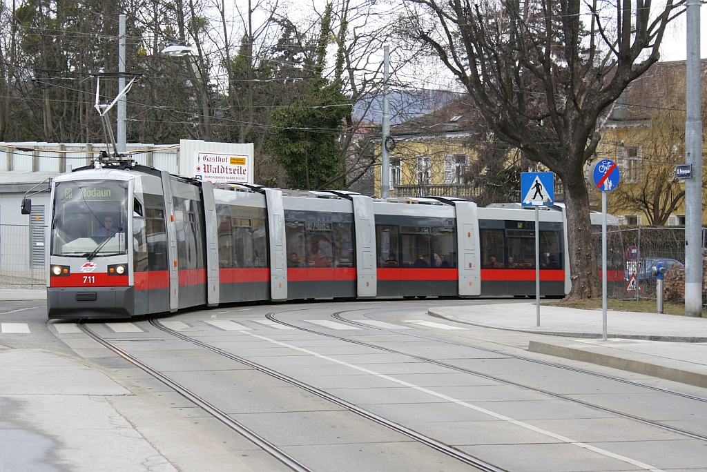B1 711 als Linie 60 biegt am 25.Februar 2012 von der Lainzerstrasse in die Hst. Preyergasse ein.