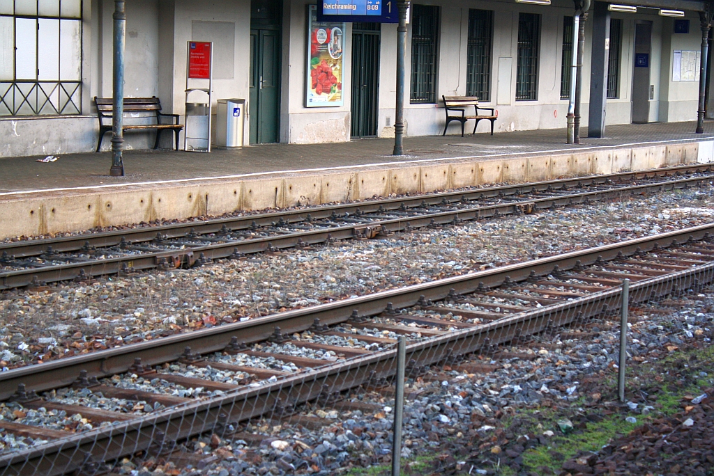 Daß es während der kalten Jahreszeit manchmal zu Schienenbrüchen kommt ist ja nichts Besonderes, aber auf 5m gleich 3 Schienenbrüche ist schon rekordverdächtig. Gleis 1 im Bf. Hütteldorf am 25.Februar 2012.