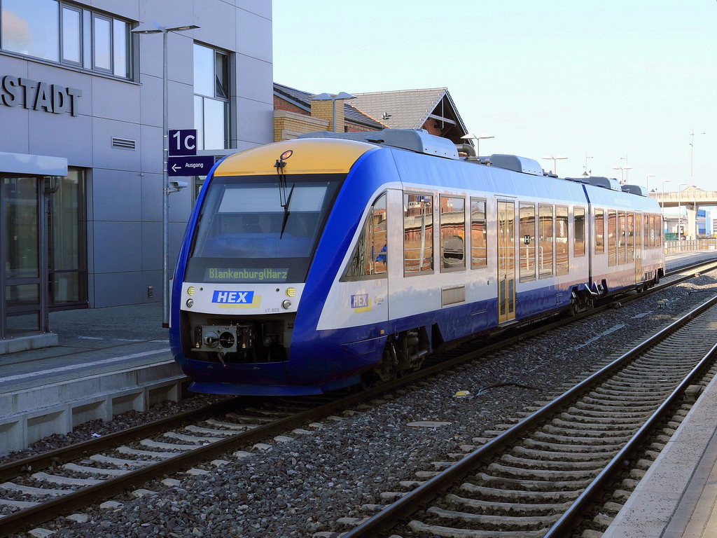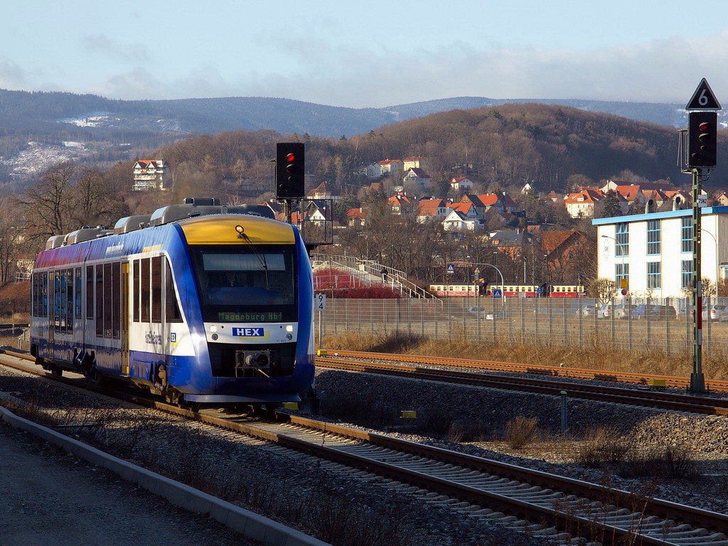 Einfahrt VT 803 nach Magdeburg Hauptbahnhof  als HEX80929 in den Bahnhof Wernigerode am 20. Februar 2012.