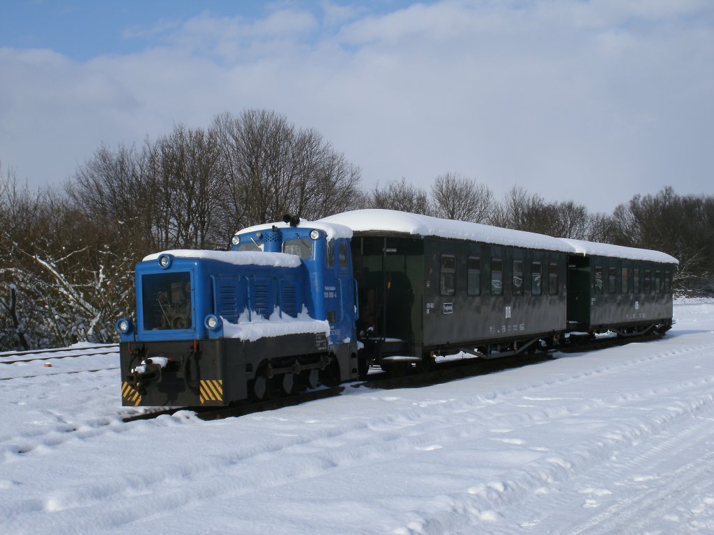 Mittlerweile ist 199 008 wieder vom Schnee befreit,als Sie am 04.Februar 2012 im Schnee in Putbus abgestellt stand.