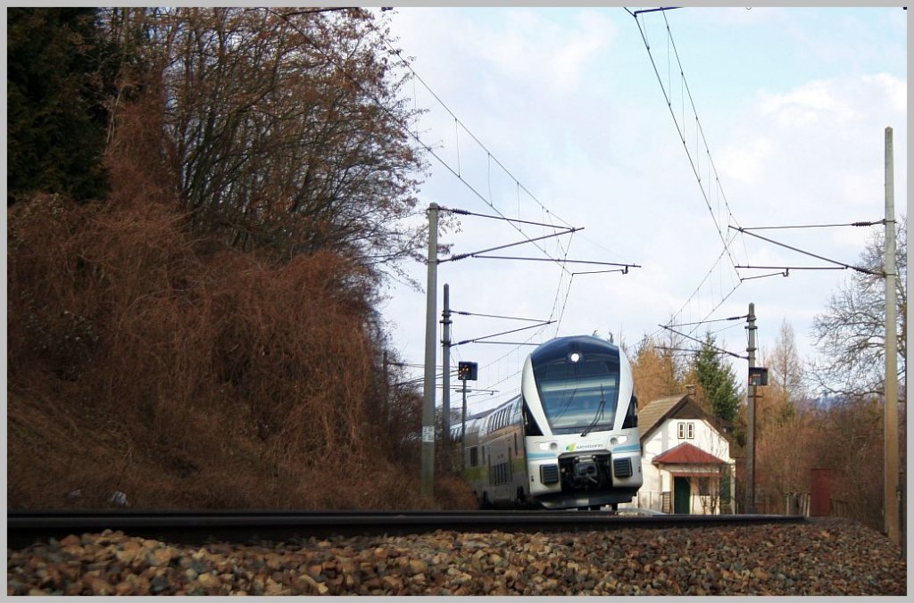 WESTbahn 17511 am 25. Februar 2012 kurz vor der Durchfahrt in Eichgraben-Altlengbach.