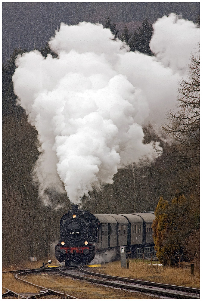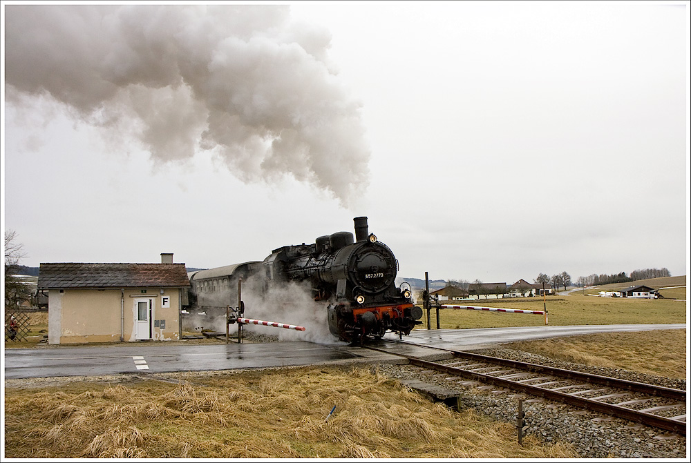 657.2770 mit dem SR14468(Ried-Attnang-Puchheim) bei der Scheinanfahrt nahe Hausruck bei der EK101. 26.2.2012