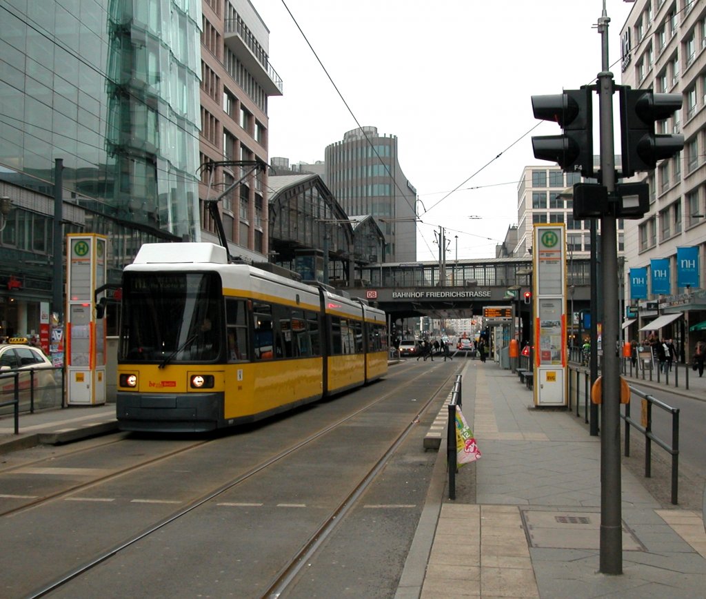 Berlin BVG SL M1 (GT6) Mitte, Friedrichstraße / Dorotheenstraße / Bahnhof Friedrichstraße am 27. Februar 2012.