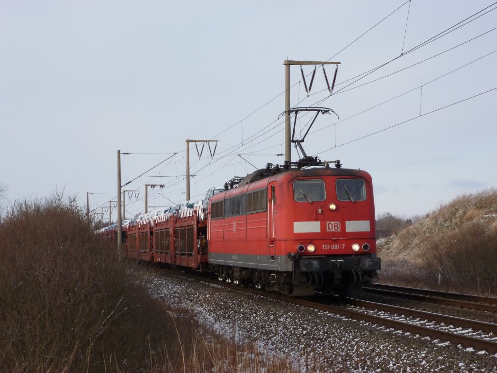 Br 151 081-7 kam am 03.02.2012 mit einem Güterzug bei Veenhusen in richtung Osnabrück vorbei.