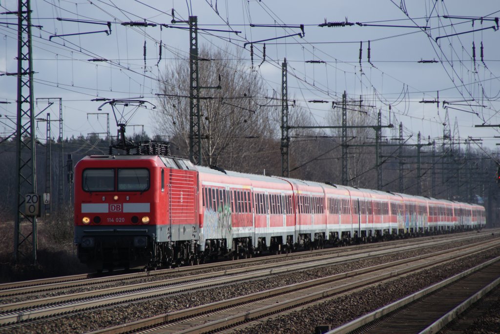 114 020 mit einen Schrottzug nach Hamm,am 26.02.2012 bei Wunstorf.
