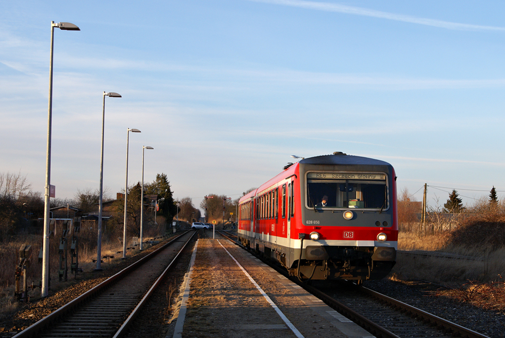 4 Stunden und 40 Minuten benötigt der RE 6 für eine Fahrt von Lübeck Hbf nach Szczecin Główny. Dabei wird an 32 Haltepunkten beziehungsweise Bahnhöfen gehalten. Als 628 656 am 26.02.2012 in den Bahnhof Kleeth einrollt, haben Fahrgäste und Zug noch 12 Halte und 1 Stunde und 46 Minuten Fahrt bis zum Erreichen des Zielbahnhofes vor sich.