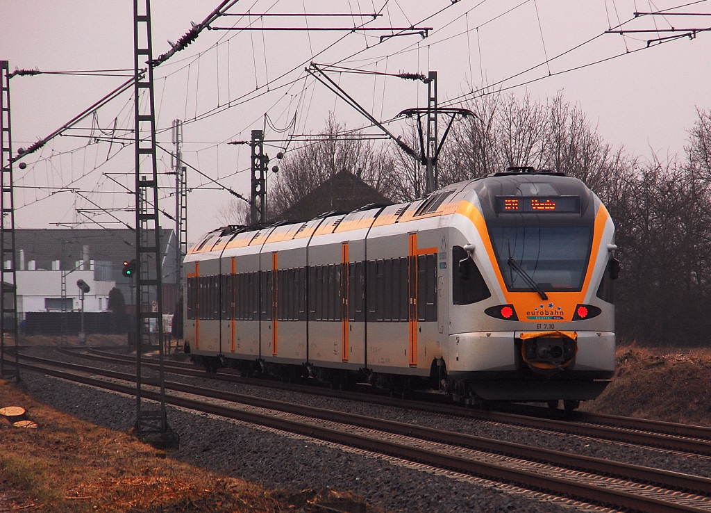 RE 13 nach Hamm/ET 6.03 und ET 7.04 der Eurobahn kommen gerade von Mönchengladbach in Richtung Neuss gefahren, als ich sie hier bei Korschenbroich abglichtet habe. 29.2.2012