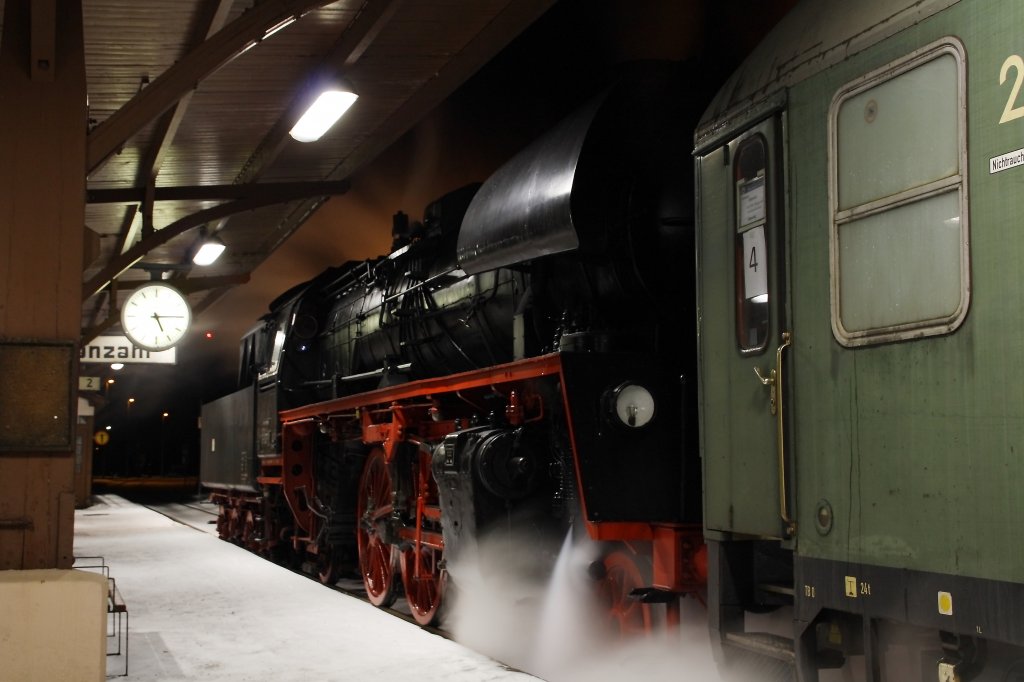 Winterzauber im Bahnhof Cranzahl. Am 18.12.2011 wartet 35 1097-1 auf dem Abfahrtsbefehl. Da der Zug noch einige Zeit stand, bot sich die Gelegenheit, etwas zu experimentieren.
