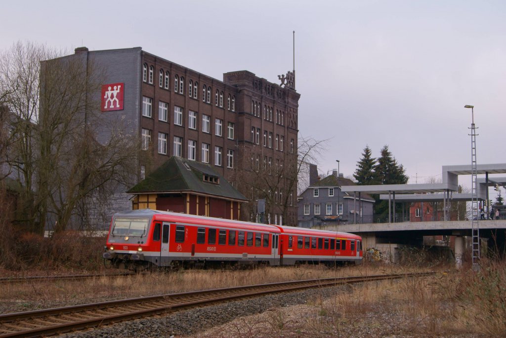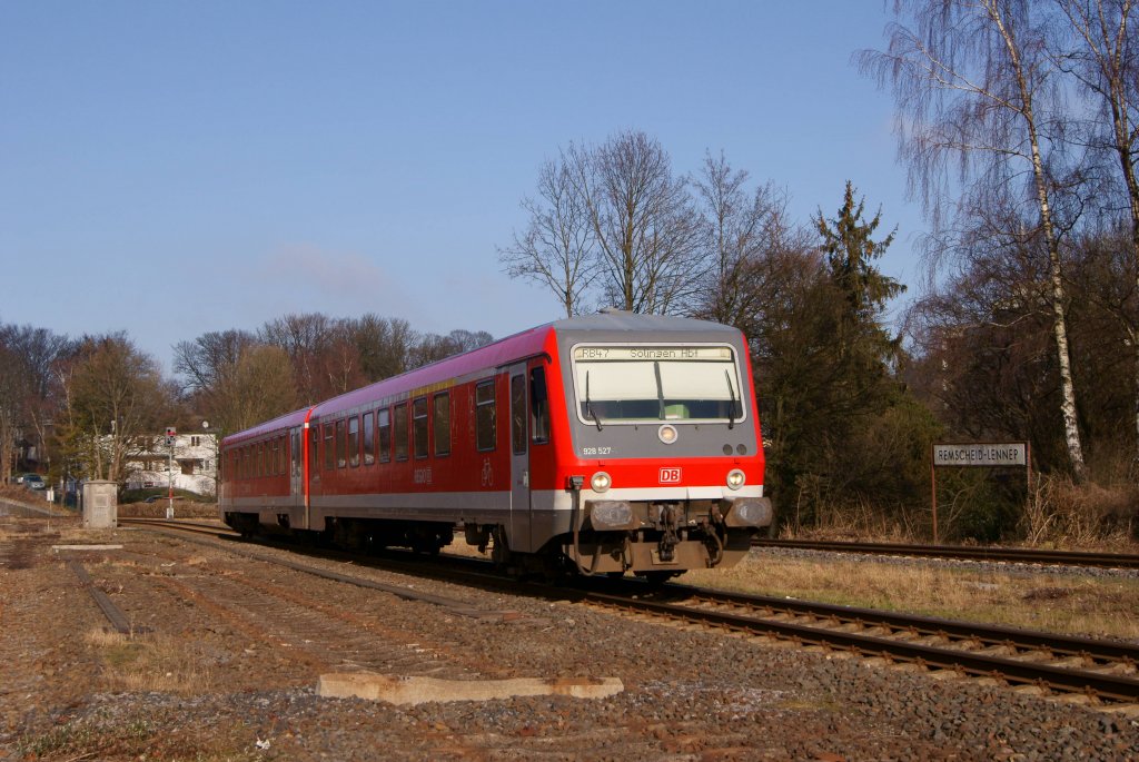 928 527 als RB 47 nach Solingen Hbf bei der Einfahrt in Remscheid-Lennep am 28.01.2012