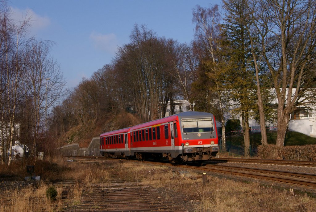 928 670 als RB 47 nach Solingen Hbf kurz vor Remscheid-Lennep am 28.01.2012