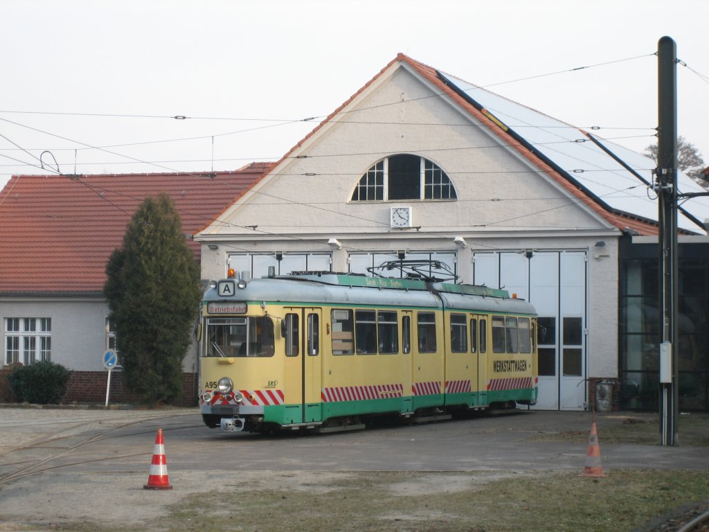 Arbeitswagen A95 (Düwag GT6, ex Tw42) vor dem Betriebshof