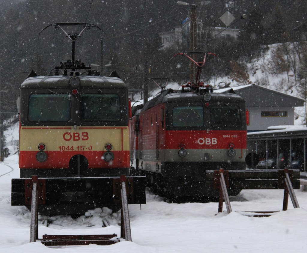 Die Schachbrett 1044 117 und 1044 096 abgestellt in Landeck Zams am 05.01.12