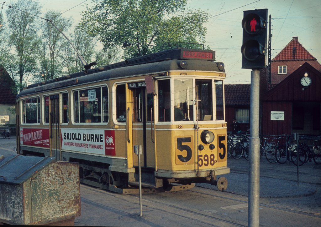 København / Kopenhagen Københavns Sporveje (KS) 5 (Tw 598) Husum, Frederikssundsvej / Islevhusvej (Endstelle) um 4 Uhr 55 am Pfingstmontag im Mai 1969. - Zu der Zeit war morgens an Sonn- und Feiertagen der erste Wagen vom Betriebshof Nørrebro in Richtung Husum ein Solo-Großtriebwagen der Serie 501-618 (Baujahre 1930-1941, Hersteller: Københavns Sporveje, Hauptwerkstätte). - Scan eines Diapositivs.