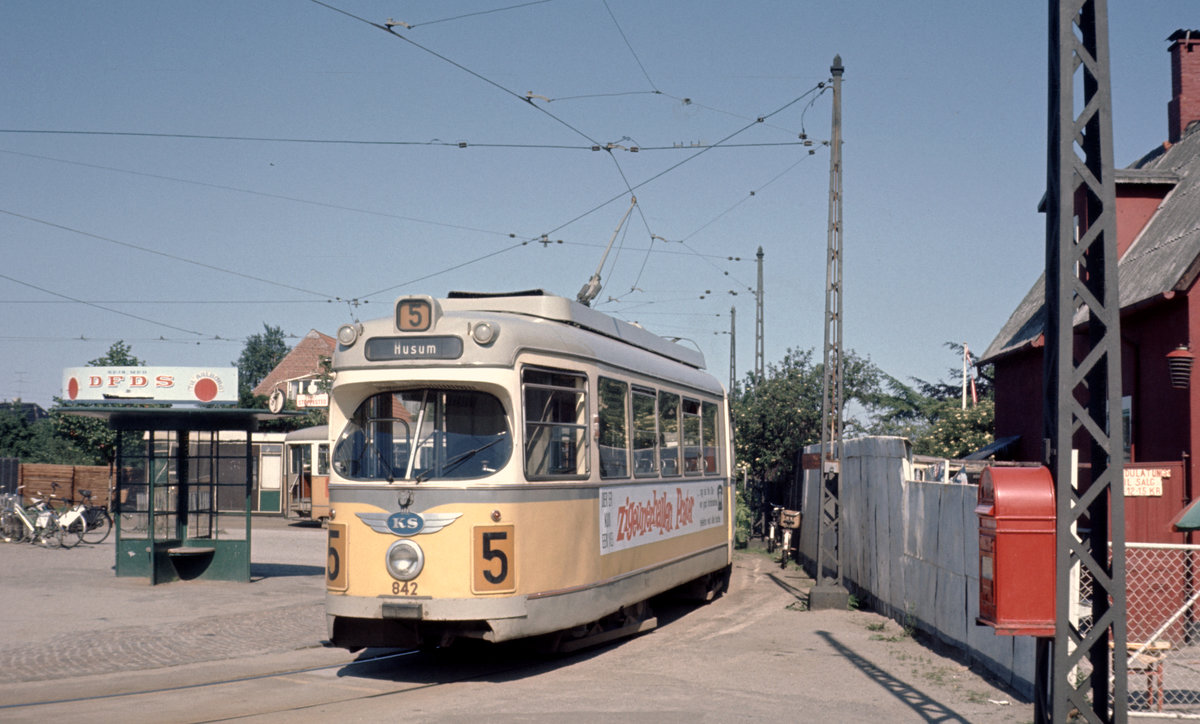 København / Kopenhagen Københavns Sporveje (KS) SL 5 (DÜWAG/Kiepe-GT6 842) København S, Sundbyøster, Formosavej (Endstelle) im Juni 1969. - Scan eines Diapositivs.
