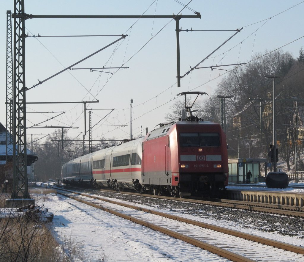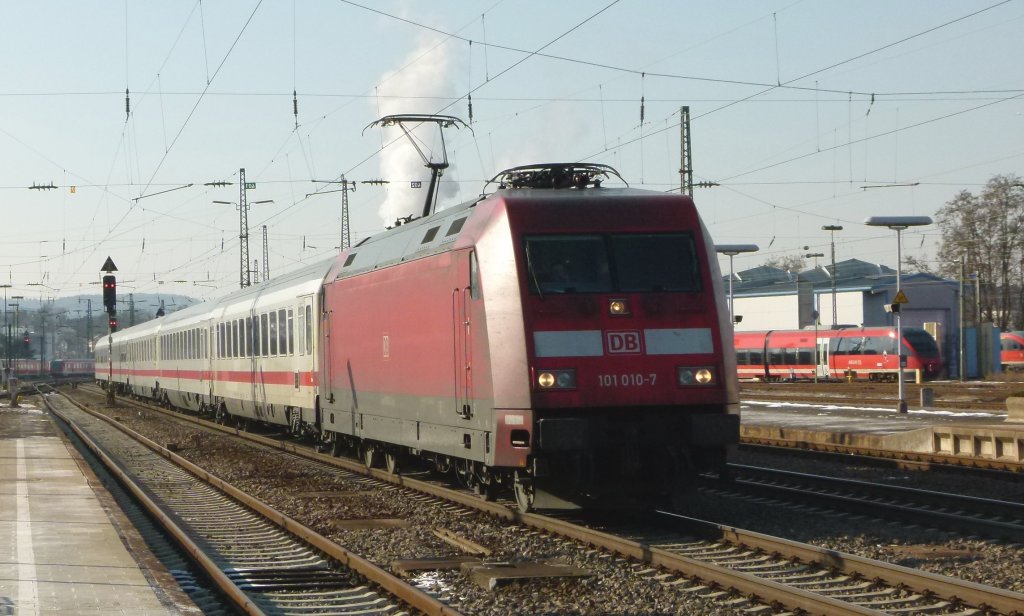 Hier fährt 101142 am 3.2.2012 mit ihrem IC in den Dortmunder Hbf ein.