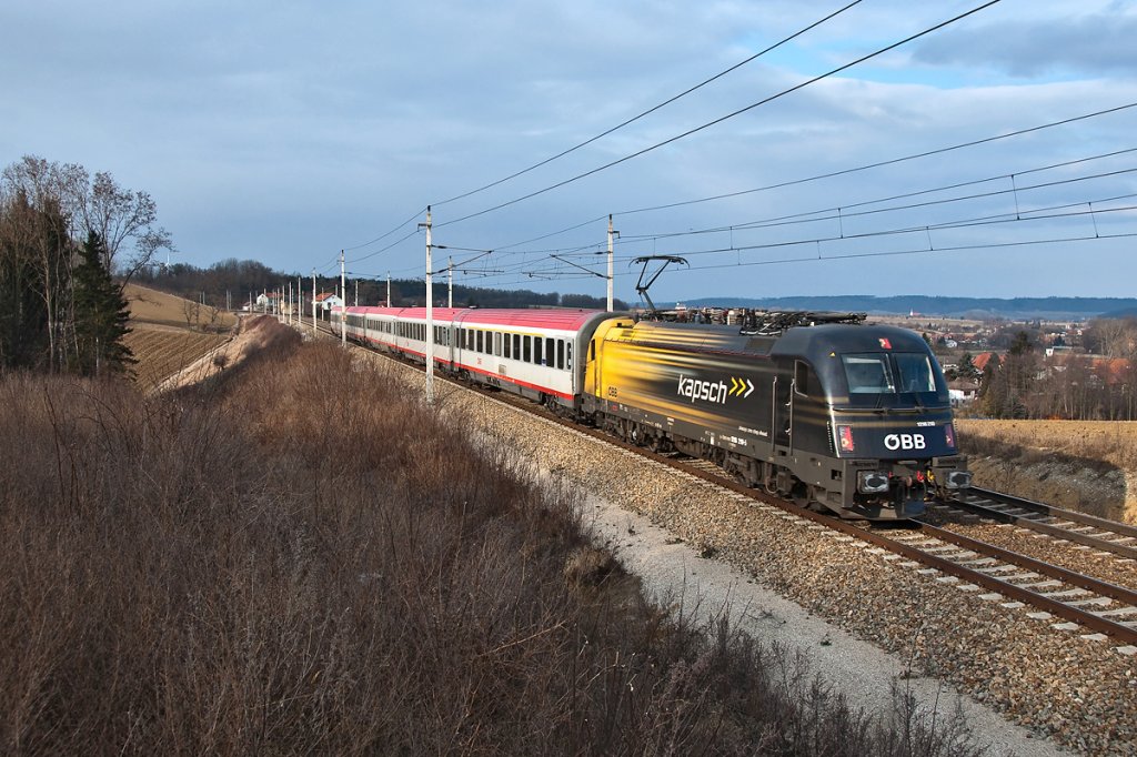 1216 210 "Kapsch" war am 05.02.2012 mit OIC 641 Richtung Wien Westbf. unterwegs. Die Aufnahme enstand kurz vor Böheimkirchen.
