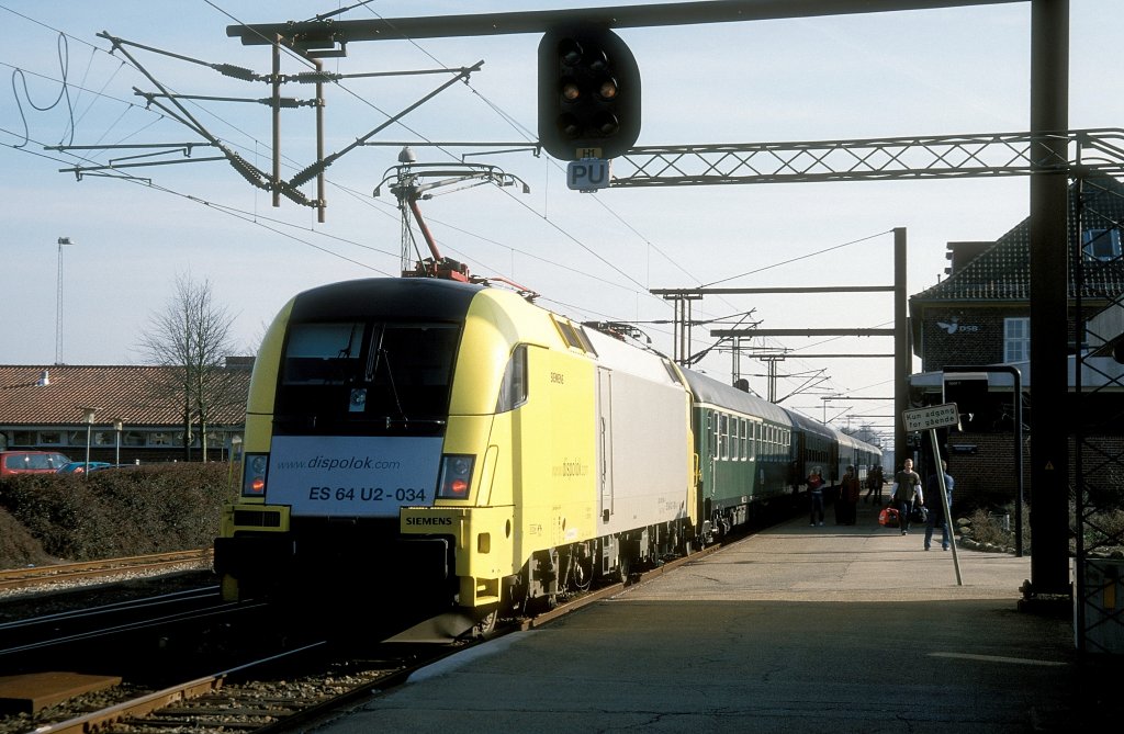ES 64 U2 - 036 (182 536-3) MRCE Dispolok GmbH für DB Fernverkehr AG mit dem EC 249  WAWEL  von Hamburg Hbf nach Krakow Glowny in Rathenow. 06.02.2012