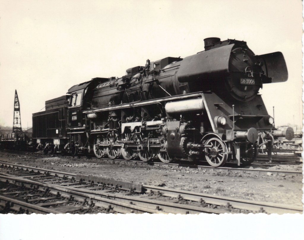 58 3006 in Riesa im Frühjahr 1968 mit Altbau- Tender und nicht abgeschrägten Witte- Blechen. Laut Aussage meines Vaters ist der Tender noch von einer P 10/ BR 39. Muß wohl bei der Reko noch irgendwo rumgestanden haben und wurde einfach weiter verwendet. Wenn ich richtig im Netz geschaut habe, war die Maschine noch bis 1977 mit diesem Tender unterwegs. Dankbar währe ich für Informationen wann 58 3006 die geänderten Windleitbleche erhalten hat. Da mein Vater 1972 auf Diesel gewechselt ist wurde diese Maschine aus den Augen verloren. Gibt es vielleicht noch mehr solche Kuriositäten?