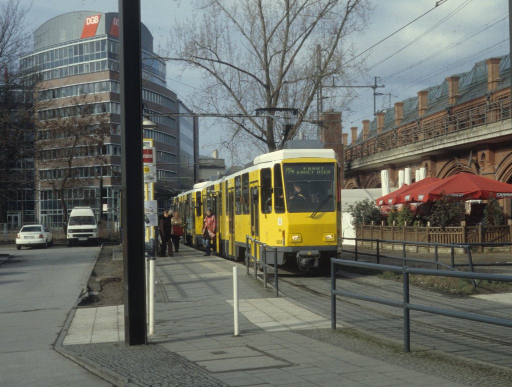 Berlin BVG SL M4 (KT4D 6004) Mitte, S-Bf Hackescher Markt (Endhaltestelle der Linie) am 19. März 2005. - Scan eines Diapositivs. Kamera: Leica CL.
