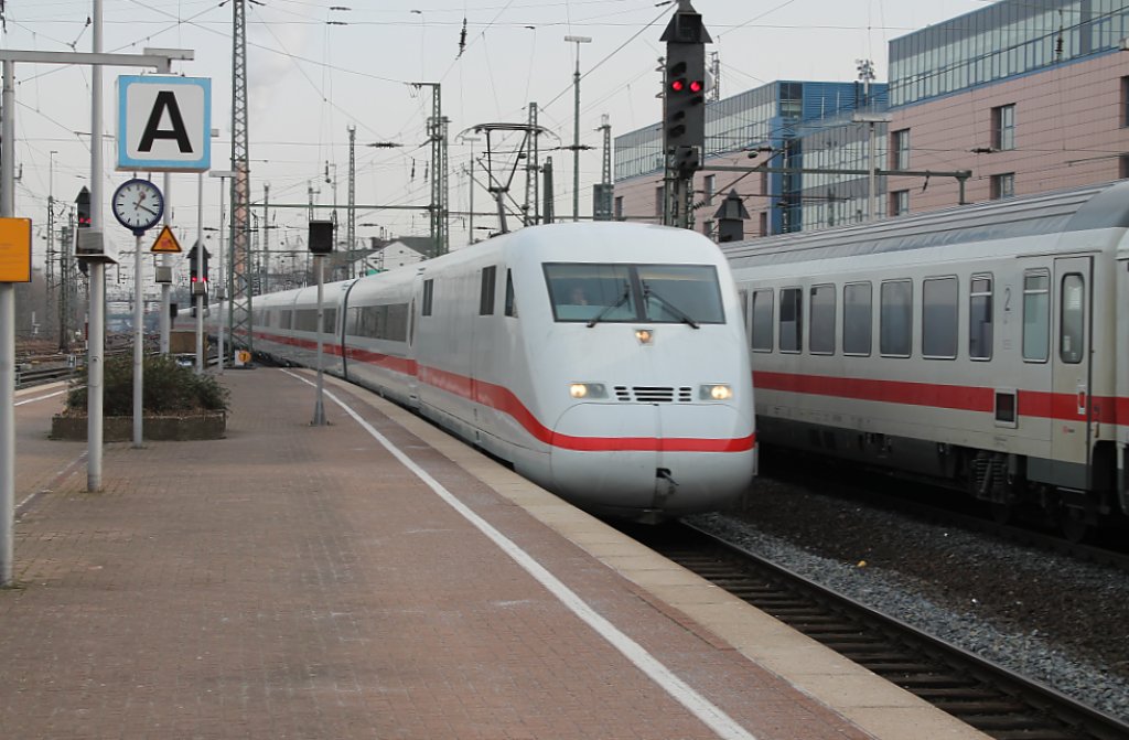 Hier fährt eine ICE2 Doppeltraktion am 3.2.2012 in den Dortmunder Hbf. Aufgrund von Vandalismus wurde der Zug statt in Hamm erst in Dortmund geteilt.
