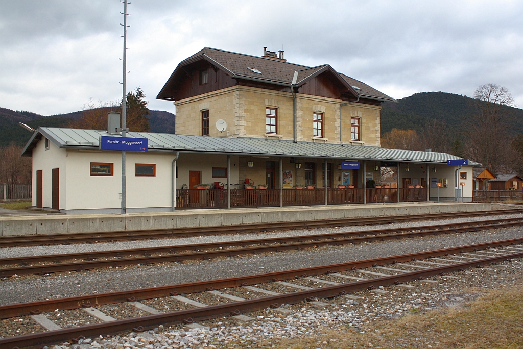 Vorplatzansicht des Bf. Pernitz-Muggendorf am 24.Dezember 2011.