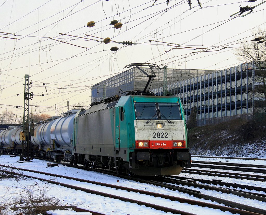 Bei eisigen Temperaturen rangiert Cobra 186 212 (2820) am 07.02.2012 in Aachen West. 185 206-0 und 185 224-3 und Cobra 186 218 (2826) warten mit ihren Kesselzügen auf abfahrt nach Belgien bzw Richtung Köln.