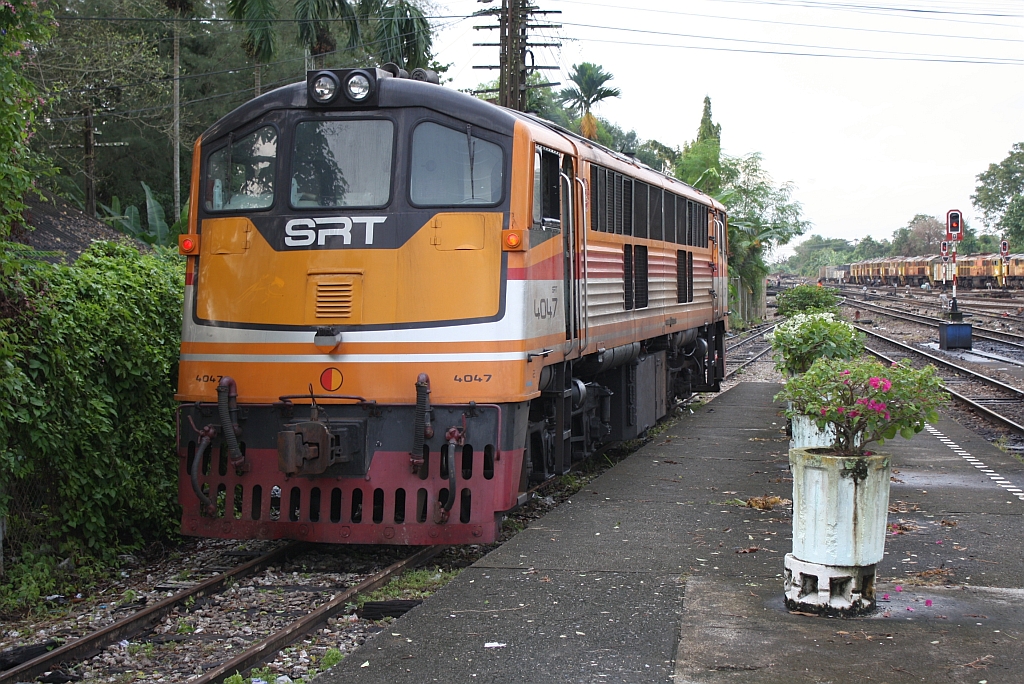 GEK 4047 (Co'Co', de, General Electric, Bj.1966, Fab.Nr. 35953) im neuen Design am 11.Jänner 2012 als Verschubreserve im Bf. Hat Yai.