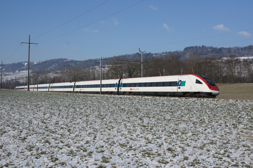 Re 460 088-8 zieht am 3.2.12 den IC 723 von Genf Richtung Lausanne, aufgenommen bei Allaman.