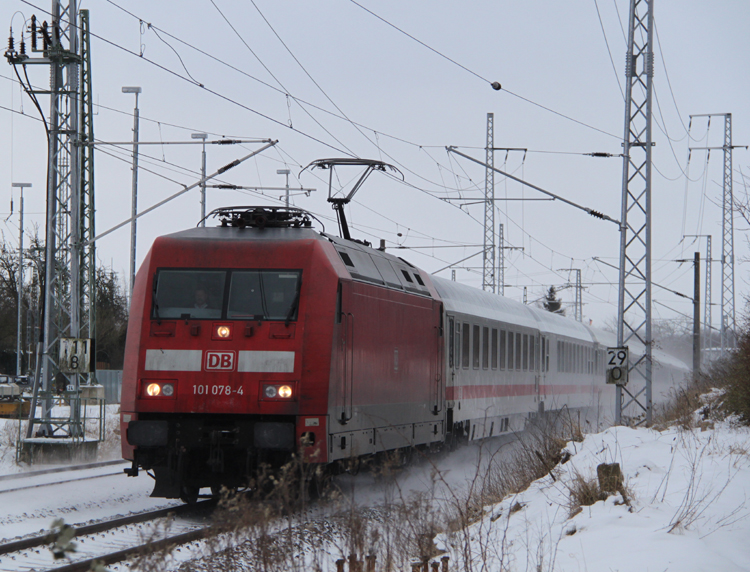 101 078-4 mit IC2184 von Hannover Hbf nach Ostseebad Binz bei der Einfahrt im Rostocker Hbf.09.02.2012