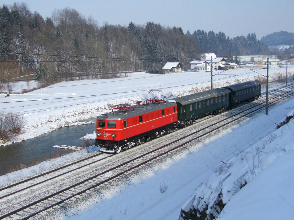 1141.21 mit Sonderzug SE 14440 Graz – Salzburg kurz vor Frankenmarkt. [08.02.12]
