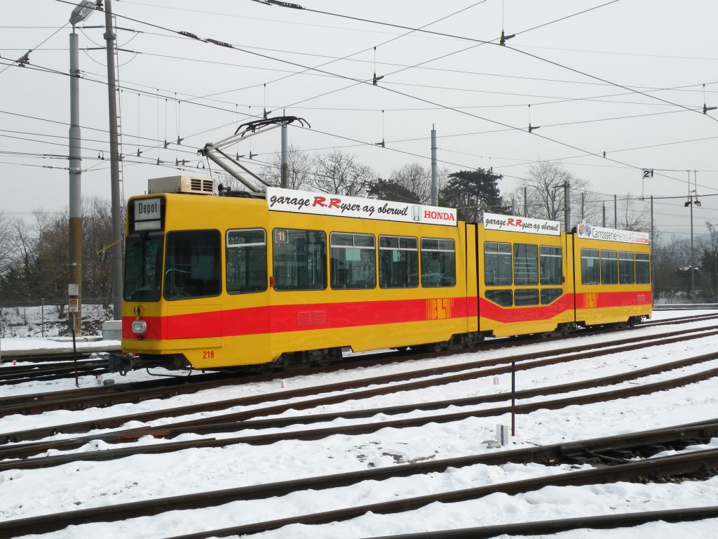 Be 4/8 mit der Betriebsnummer 218 auf dem Hof des Depots Ruchfeld. Die Aufnahme stammt vom 09.02.2012.