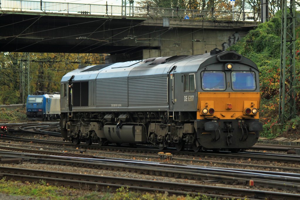Class66 DE6307 von Crossrail rangiert am 05.11.2011 in Aachen West.