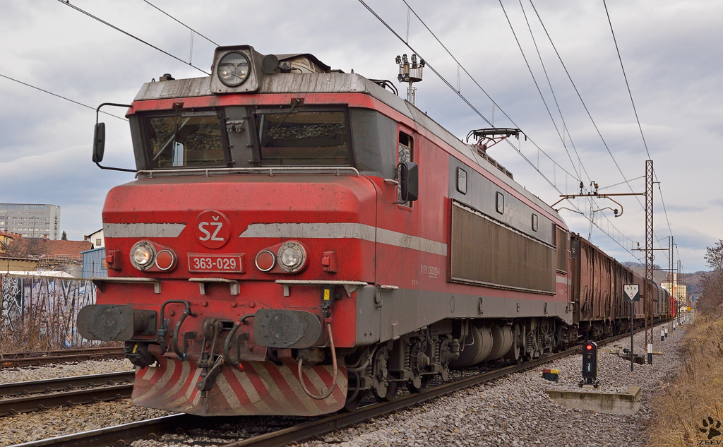 SZ 363-029 zieht Güterzug durch Maribor-Tabor. / 05.01.2012