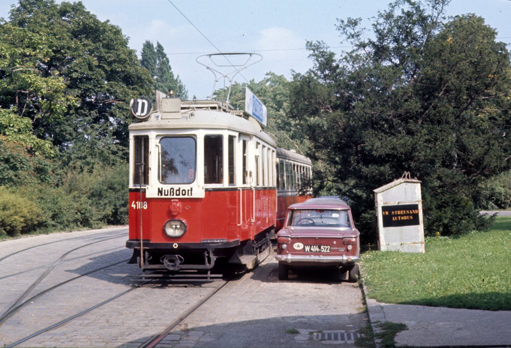 Wien Wiener Stadtwerke-Verkehrsbetriebe (WVB) SL D (M 4108 (Lohnerwerke 1929)) III, Landstraße, Südbahnhof (Endstation) am 1. September 1969. - Scan eines Diapositivs. Film: Kodak Ektachrome.