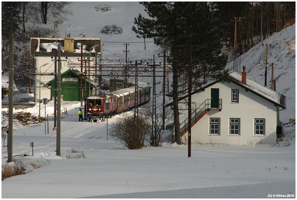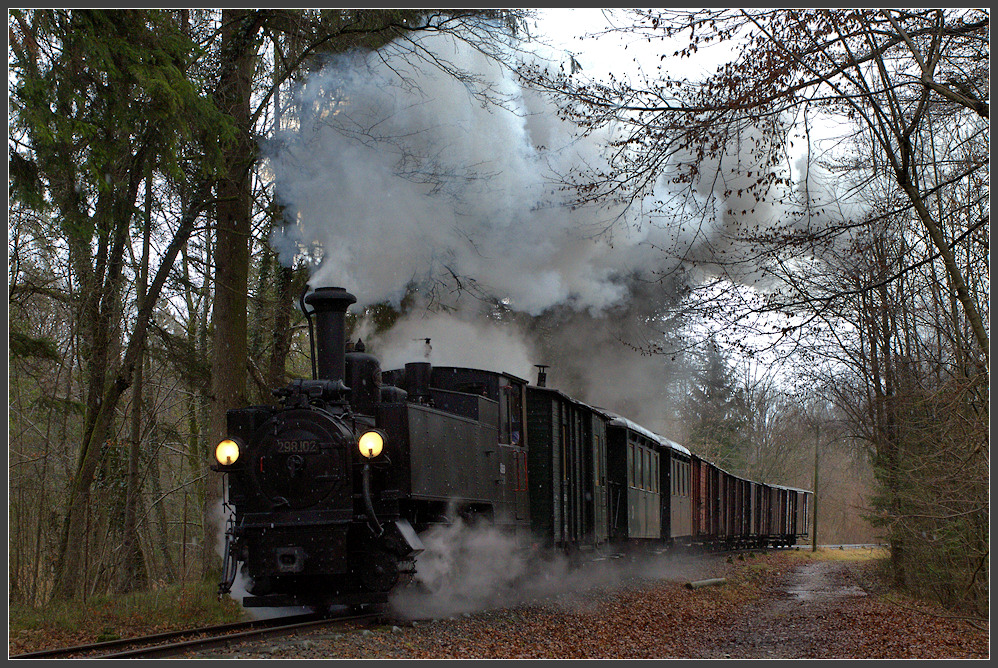 Impressionen der Fotofahrt auf der Steyrtalbahn am stürmischen Dreikönigstag. 298.102 (LETTEN) mit GmP im Waldstück kurz nach der Haltestelle Rosenegg, 6.1.2012