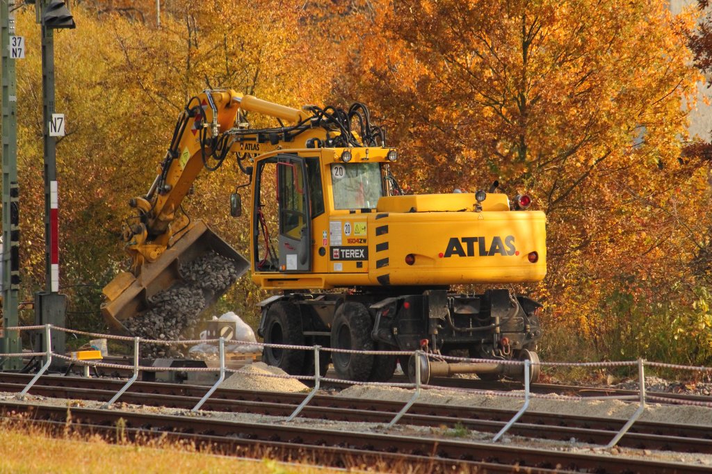 1604 ZW Atlas Zweiwegebagger bei der Arbeit im Bahnhof Hochstadt Marktzeuln am 05.11.2011.