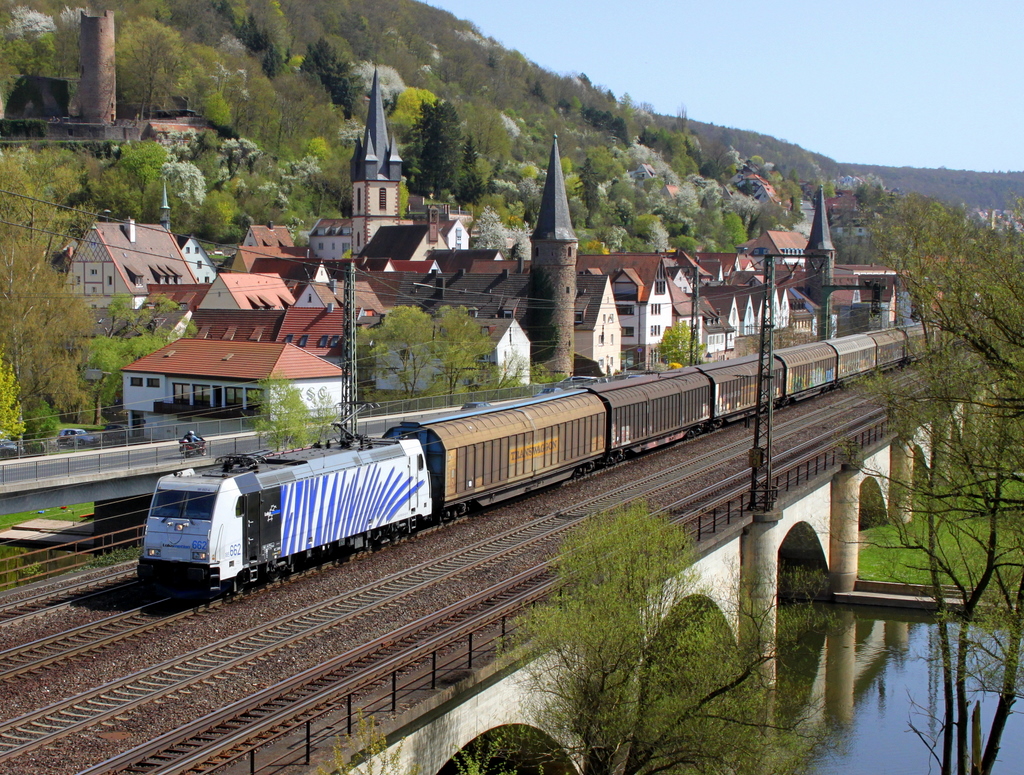 185 311-8 Railion kurz vor der Durchfahrt des Michelauer Banhofs am 13.08.2011