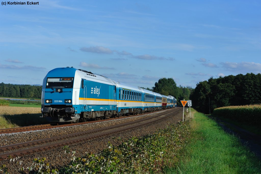 223 064 mit ALX 84110 aus München Hbf Richtung Hof Hbf bei Oberteich, 10.09.2011